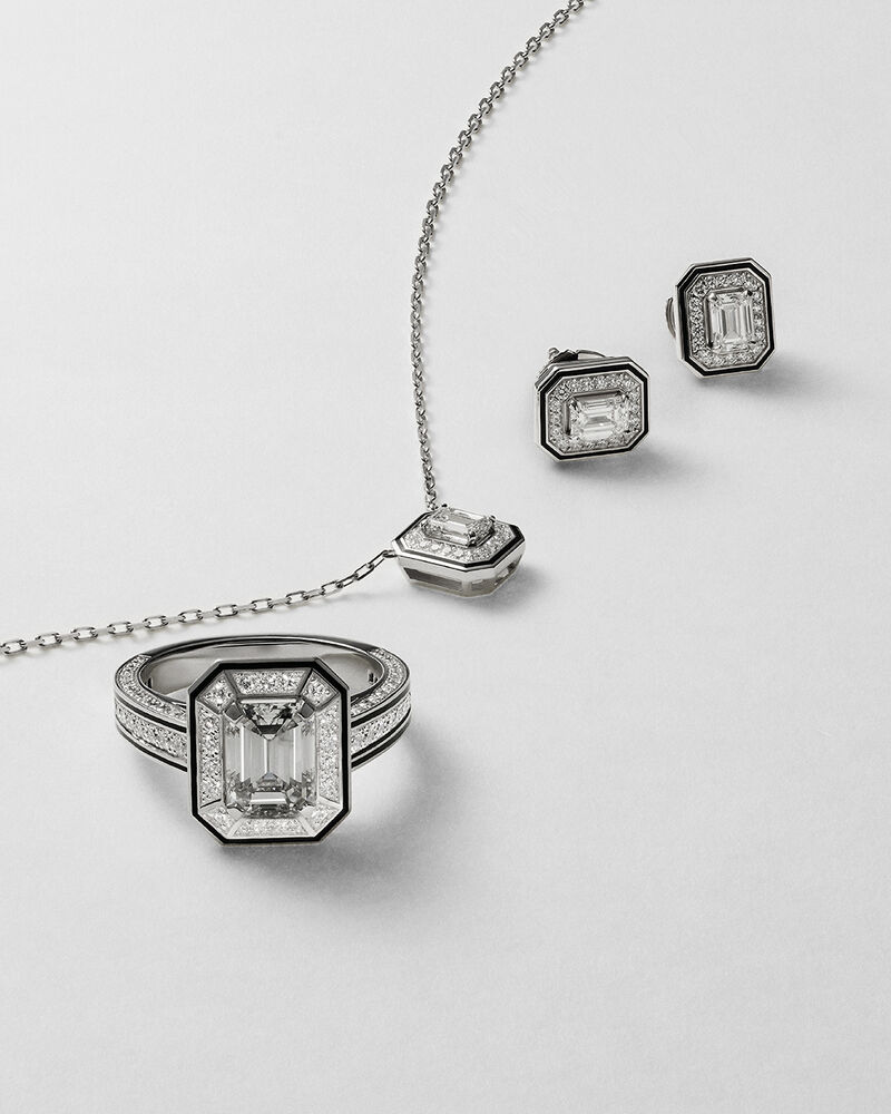 Inspired by the twelve avenues of the Place de l'Étoile, these creations capture the luminous architecture of Paris. In a graphic network, twelve branches converge around a central stone, symbolizing an encounter where everything leads to everything else.