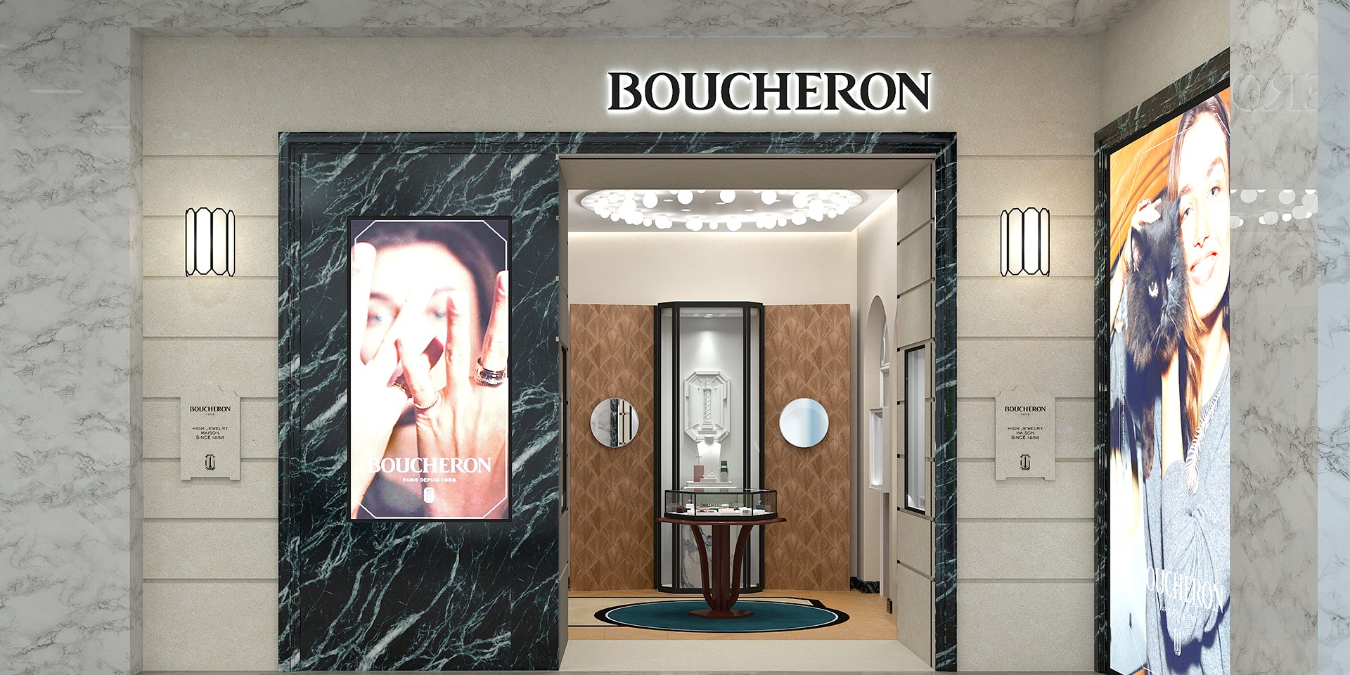 2021년 6월, 프렌치 하이주얼리 메종 부쉐론이 ‘현대백화점 판교점'에서 새로운 부티크를 선보입니다. 파리 방돔 광장에 위치한 부쉐론의 역사적인 플래그십을 연상시키는 새 부티크는 현대적인 분위기가 감도는 가운데, 파리 전통의 건축학적 코드를 담아낸 부쉐론 특유의 디자인 컨셉트가 모두 녹아 있습니다.