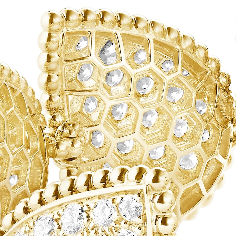 A true high jewelry signature, the invisible part of Serpent Bohème pieces is as meticulous as the visible part. The reverse side of the drop has a honeycomb pattern that lets light through and enhances the stones' sparkle.